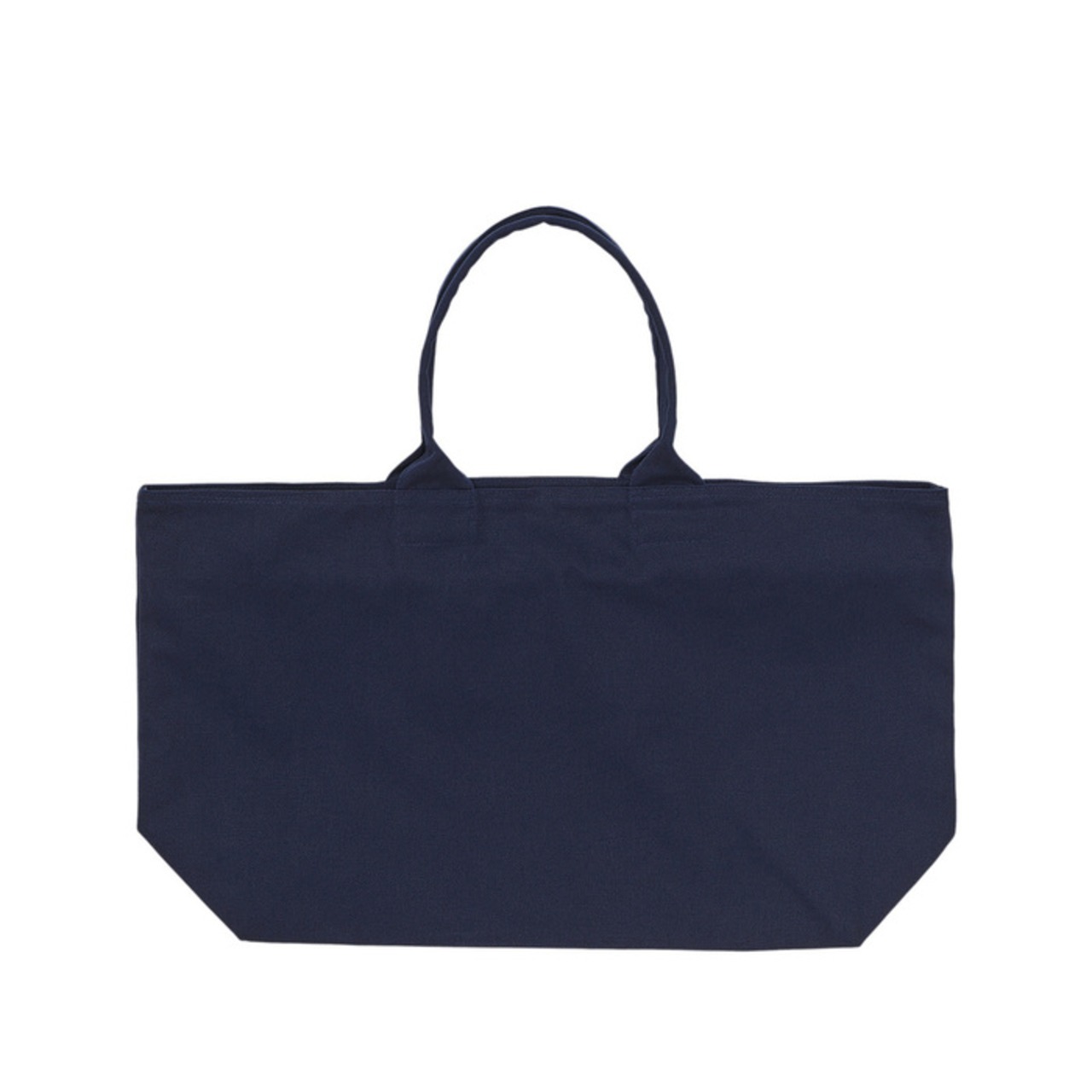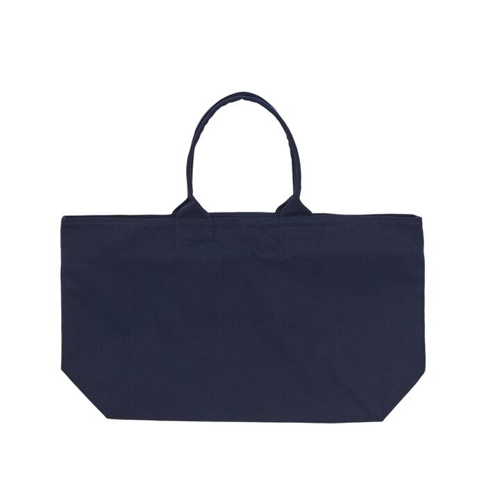 丈夫なキャンバス生地が特徴の大容量ジップトートバッグ。